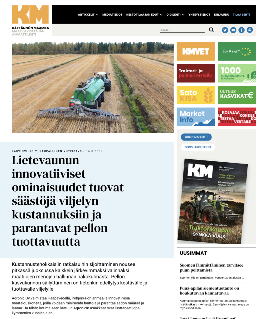 Käy lukemassa Käytännön Maamiehen nettisivuilla julkaistu artikkelimme lietevaunujen hyödyllisistä ominaisuuksista: